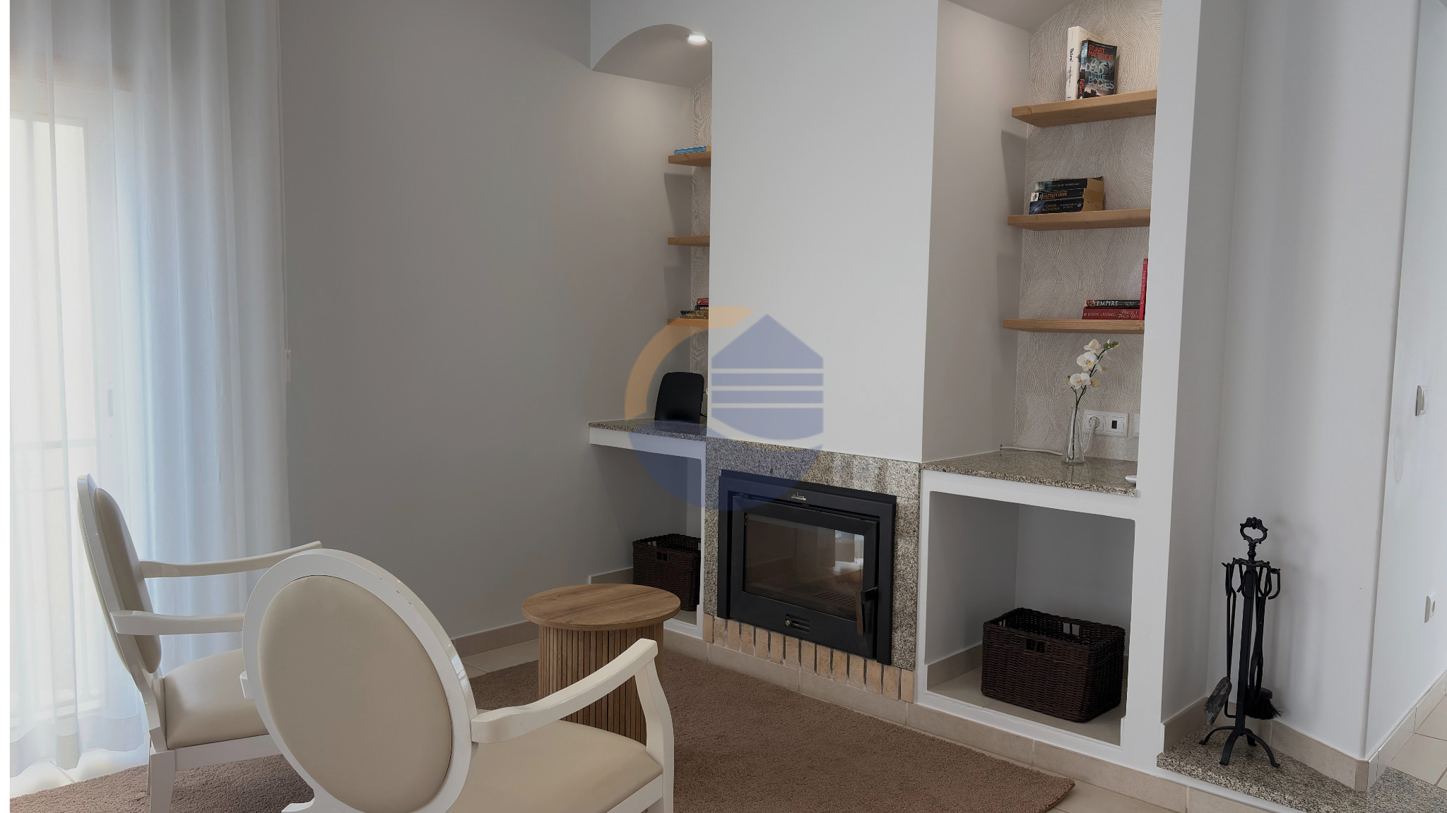 Esta casa está equipada com Wi-Fi, televisão de ecrã plano, lareira e ar condicionado nos quartos.